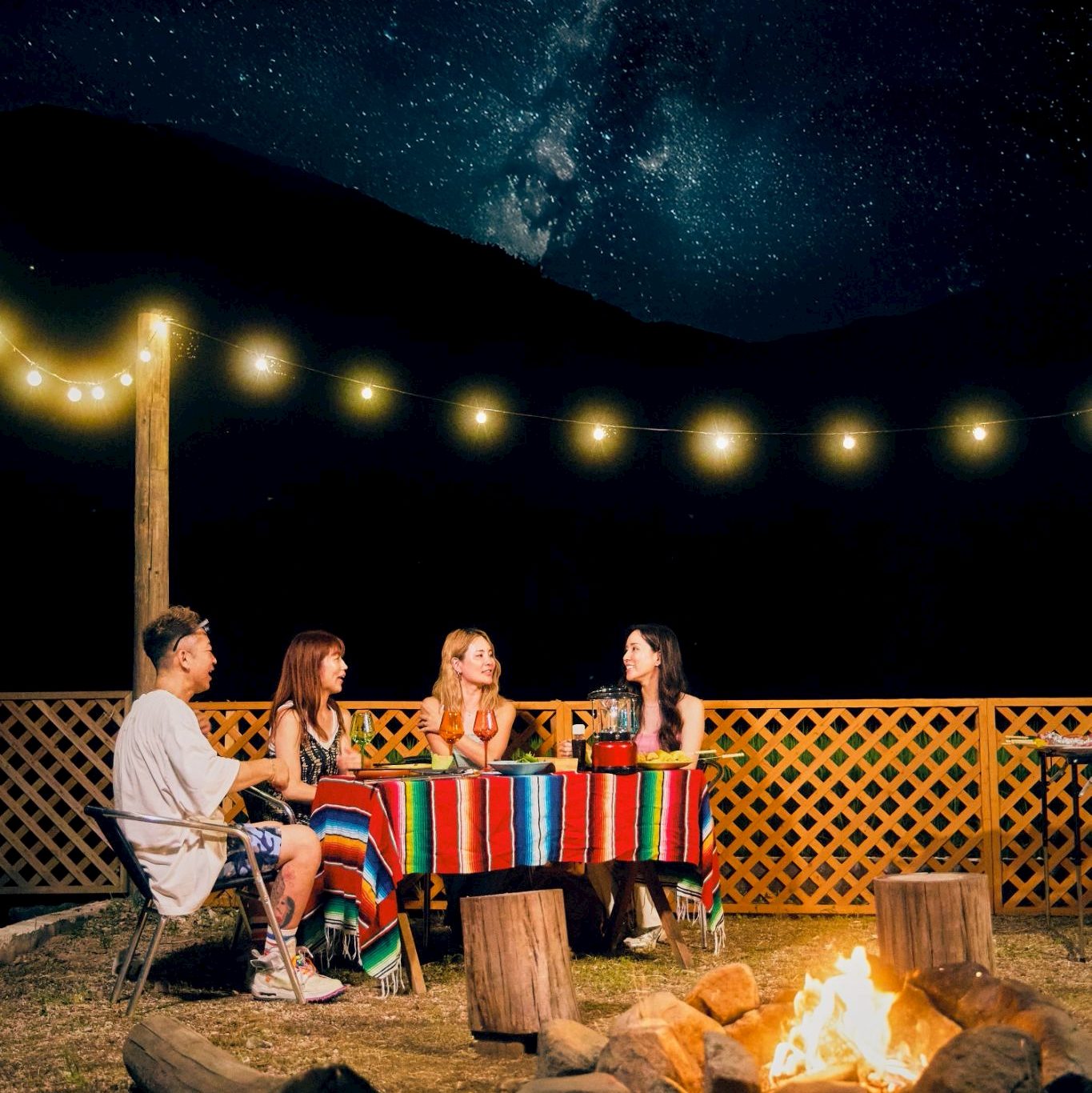 川のせせらぎと田園風景に包まれ、夏には蛍が舞い、夜は焚き火の灯りが心を癒します。
